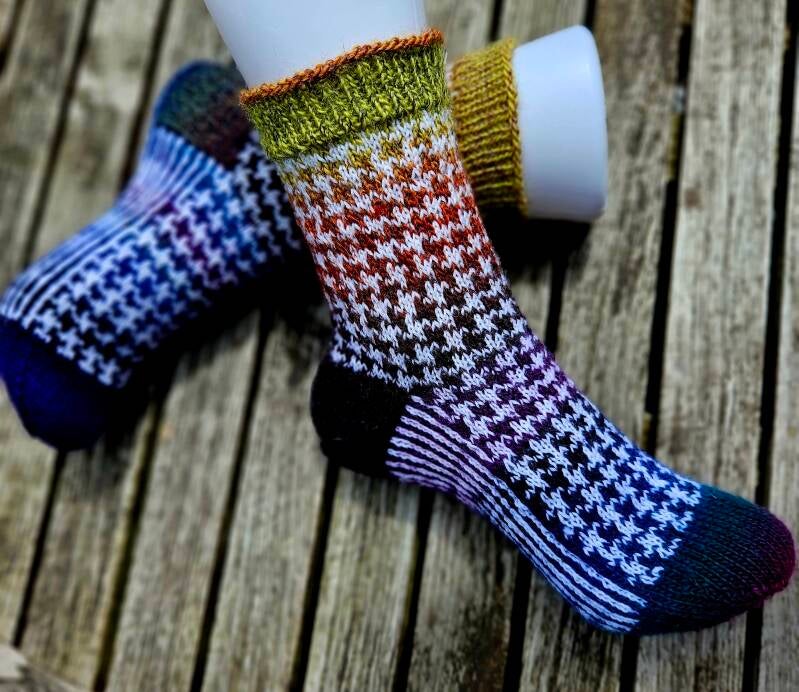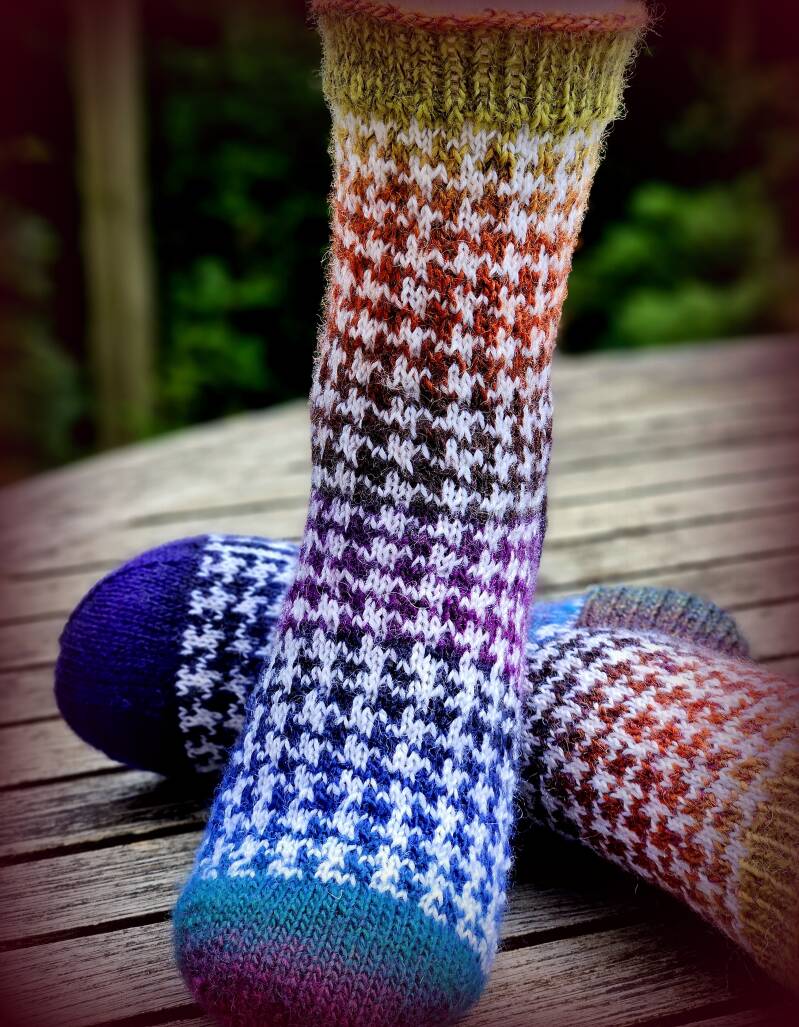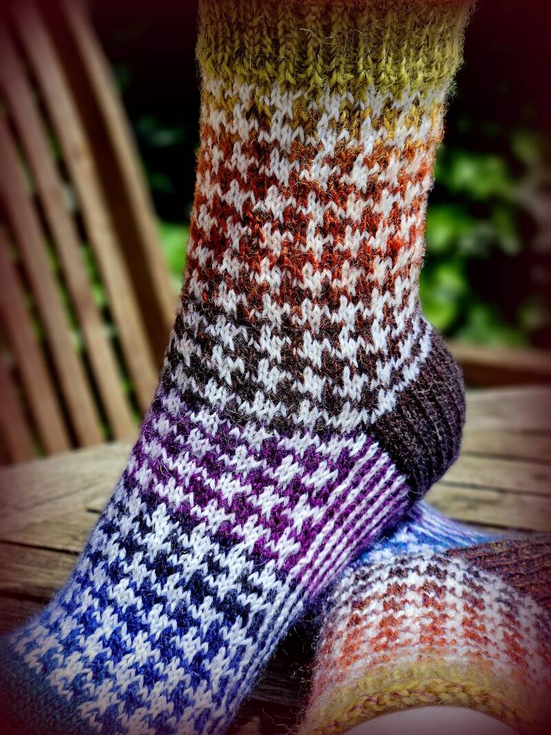 Earth is gemaakt met verloop-garen. Het is heel lastig om precies dezelfde sokken te krijgen.